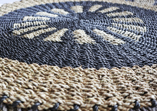Round Seagrass Black & Tan Rug - Inner Sun - 1m