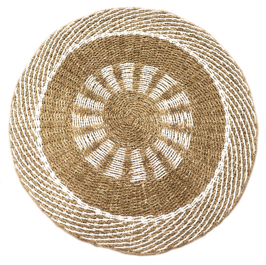 Round Seagrass White & Tan Rug - Inner Sun - 1m