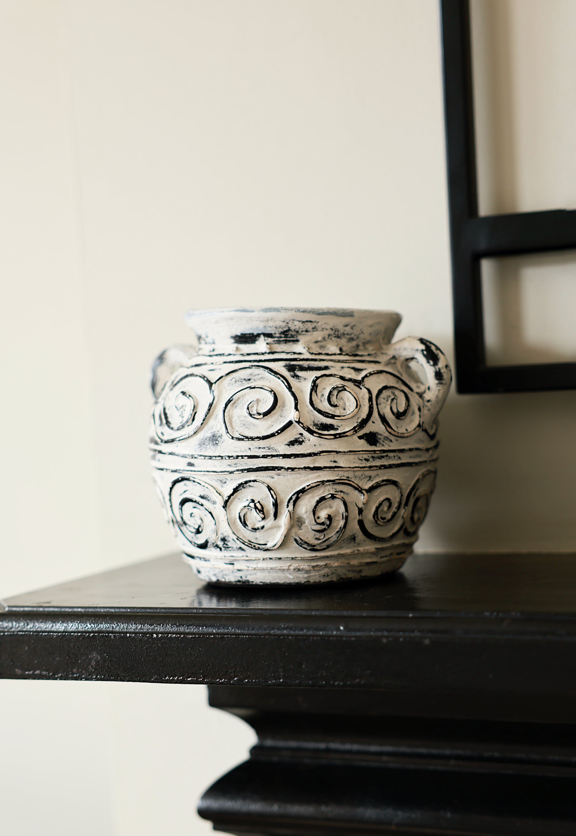 Greek Style Clay Plant Pot With Handles - Terracotta Cream 15cm